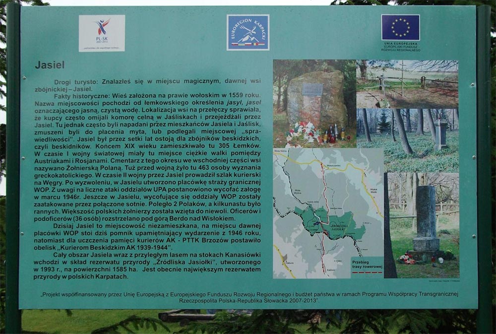 Przypomnijmy te wydarzenia: w marcu 1946 r. w miejscowości Jasiel (Bieszczady), wycofujące się Oddziały WOP zostały zaatakowane przez połączone sotnie. Poległo wówczas dwóch Polaków, a kilkunastu zostało rannych. Większość polskich żołnierzy została wzięta do niewoli, natomiast 36 oficerów i podoficerów rozstrzelano pod górą Berdo nad Wisłokiem. Dzisiaj na miejscu dawnej placówki WOP stoi pomnik postawiony ku czci poległych tam żołnierzy. Natomiast dla uczczenia pamięci kurierów AK, PTTK Brzozów postawiło obelisk "Kurierom Beskidzkim AK 1939-1944"