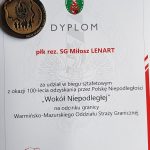 W związku z zorganizowanym przez funkcjonariuszy SG biegiem sztafetowym „Wokół Niepodległej”, aby upamiętnić 100-lecie odzyskania przez Polskę niepodległości, we wtorek 09 października 2018r. sztafeta przebiegła przez miasto i powiat kętrzyński.W tym przedsięwzięciu czynny udział zaznaczyli członkowie Związku Emerytów i Rencistów Regionu Warmińsko-Mazurskiego w Kętrzynie. Na trasie Garbno – Kętrzyn w biegu sztafetowym pobiegł członek Prezydium Regionu Związku kol. płk. rez. SG Miłosz LENART, z którym w zmianie sztafetowej pobiegli funkcjonariusze z CS SG i W-M OSG w Kętrzynie. Tuż po godz. 6.00 sztafeta dotarła do Komendy W-M OSG i CS SG w Kętrzynie. Tam w obecności kadry ośrodka CS SG i W-M Oddziału SG delegacja Naszego Związku – kolega płk rez. SG Jerzy ZBOROWSKI, kolega ppłk rez. SG Jan Koszczyc i kolega członek ZG mjr rez. SG Marek Kędziora, złożyli kwiaty pod obeliskiem upamiętniającym żołnierzy Korpusu Ochrony Pogranicza – Obrońców Ojczyzny. Uczestnikowi biegu sztafetowego koledze płk rez. SG Miłoszowi LENARTOWI delegowani członkowie Związku wręczyli pamiątkowy „Dyplom”, a przedstawiciel Komendy CS SG i W-M SG w ręczył pamiątkowy medal.