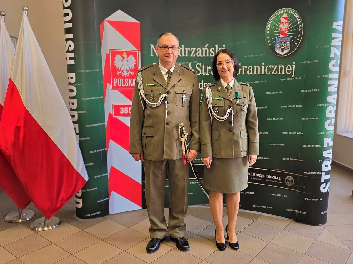 Delegacja Regionu ZEiRSG podczas uroczystości w Nadodrzańskim Oddziale Straży Granicznej.