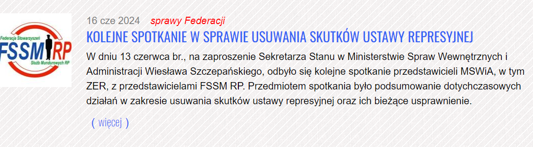 Komunikat Federacji SSM RP – spotkanie z Kierownictwem MSWiA w sprawie usuwania skutków ustawy represyjnej.