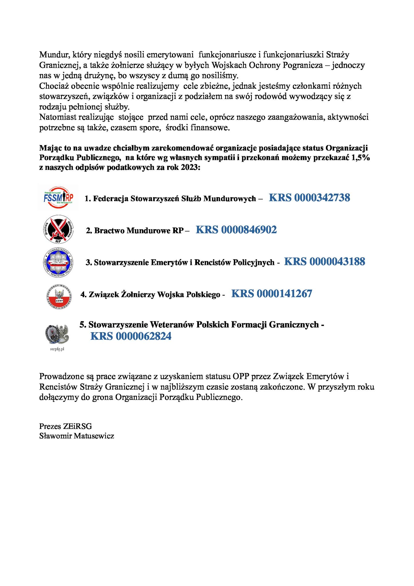 Poniżej lista stowarzyszeń mundurowych posiadających już status organizacji pożytku publicznego. Zachęcamy do skorzystania!