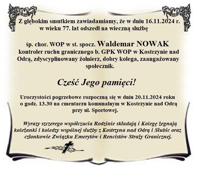 Drodzy Przyjaciele i Sympatycy Związku Emerytów i Rencistów Straży Granicznej