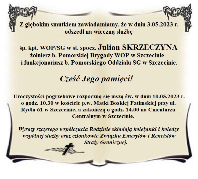 Ostatnie pożegnanie śp. kpt. WOP/SG w st. spocz. Juliana SKRZECZYNY.