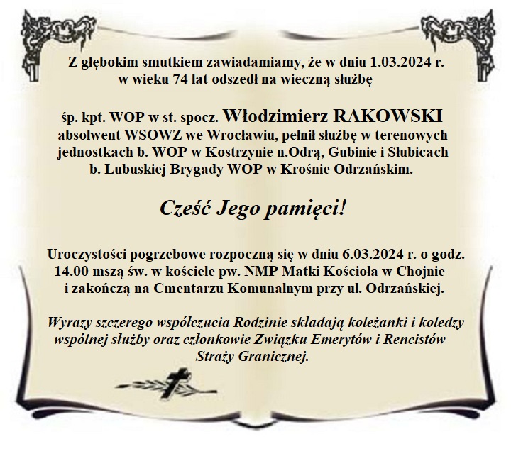 Drodzy Przyjaciele i Sympatycy Związku Emerytów i Rencistów Straży Granicznej