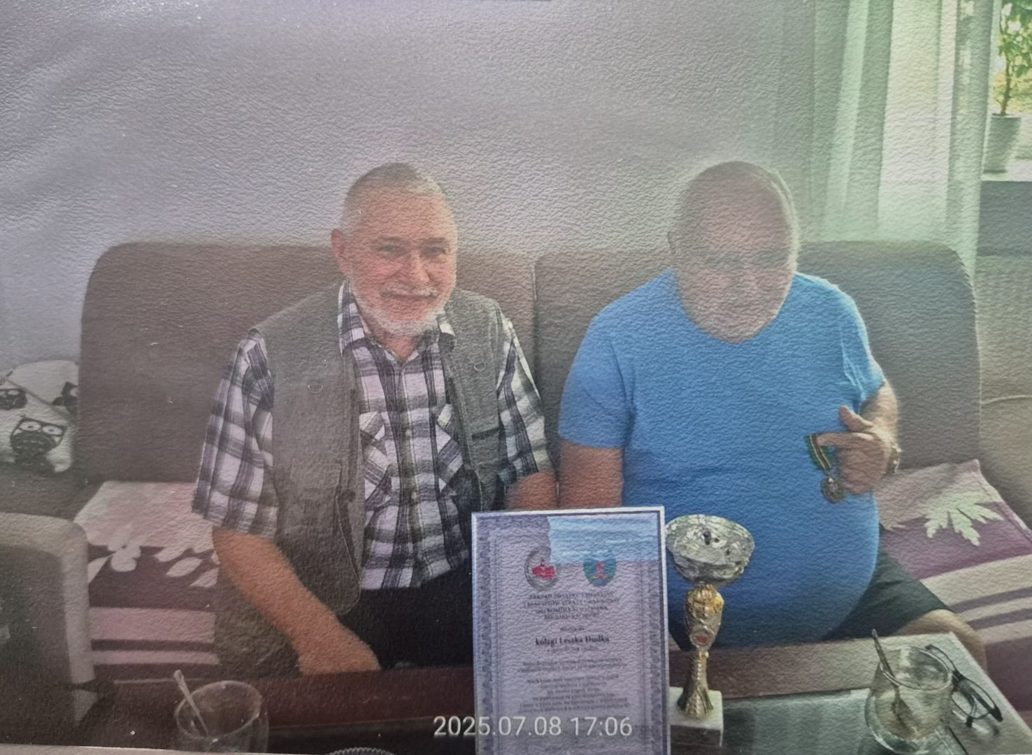 W dniu 8 lipca 2025 roku nasza delegacja miała zaszczyt gościć u naszego chorego, przebywającego na rekonwalescencji domowej, „medalisty”, kolegi Leszka. Został on odznaczony medalem 80-lecia utworzenia Wojsk Ochrony Pogranicza 1945 – 2025 za aktywnie działania na rzecz Regionu Racibórz jako zwykły członek. Poza tym nasz kolega otrzymał okolicznościowy puchar i dyplom z okazji 70. urodzin. Pomimo niezbyt dopisującego zdrowia wciąż nas wspiera w naszych statutowych działaniach. Bierze również udział w różnych inicjatywach podejmowanych przez Region jak również w uroczystościach patriotycznych i promujących służbę w Straży Granicznej.