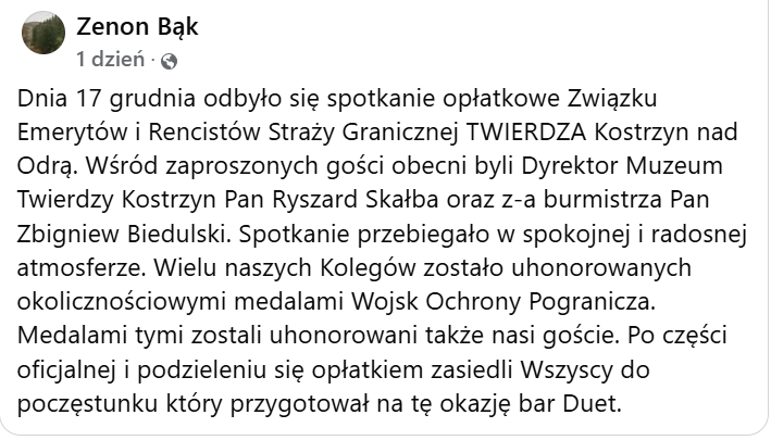 Poniżej zamieszczamy zrzut wpisu na Facebooku Kol. Zenona Bąka oraz galerię zdjęć ze spotkania. Życzymy członkom Regionu oraz zaproszonym gościom wszystkiego najlepszego z okazji świąt Bożego Narodzenia i zbliżającego się Nowego 2026 Roku!