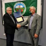 Kol. Sławomir Matusewicz zaprezentował problemy naszego środowiska oraz, w imieniu przewodniczącego Komitetu Organizacyjnego, wręczył kol. Edwardowi Pierzchale podziękowania za zaangażowanie w przygotowanie, wsparcie organizacji i zabezpieczenie przebiegu manifestacji-protestu „Alarm graniczny trwa” w Cieszynie.