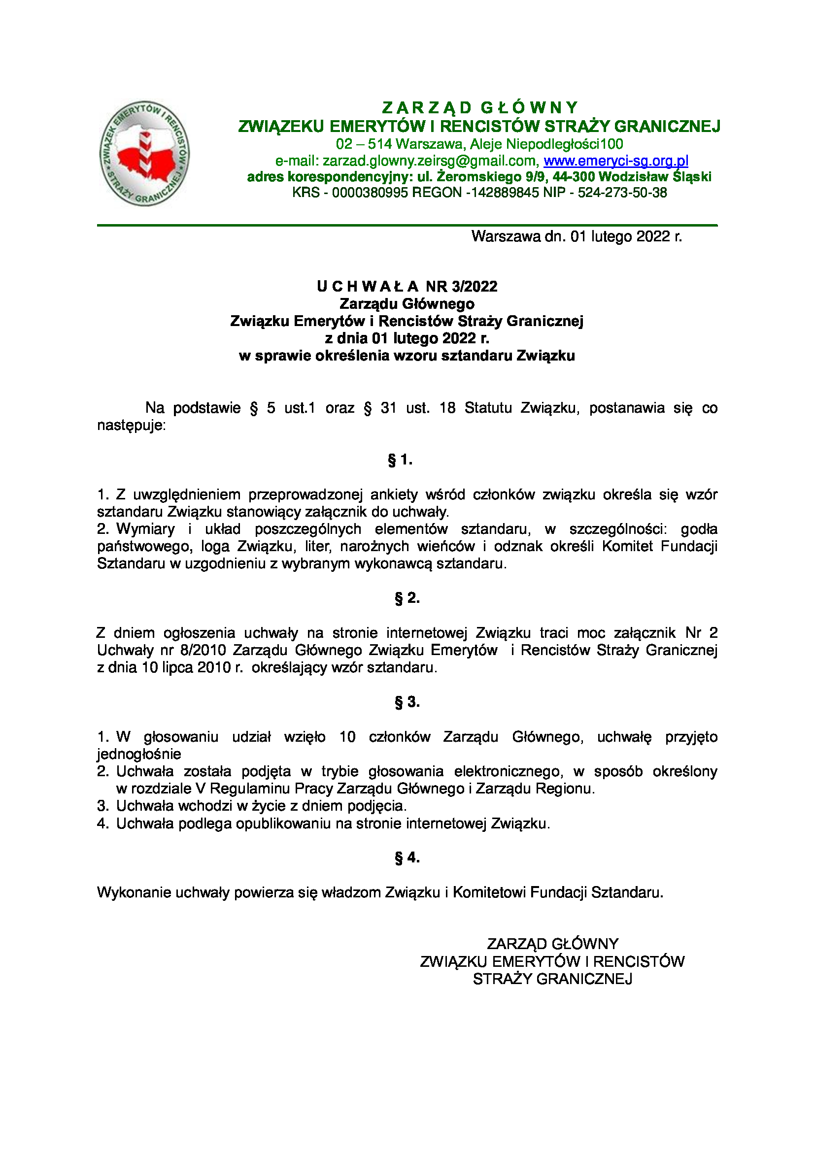 Zarząd Główny Związku Emerytów i Rencistów Straży Granicznej.