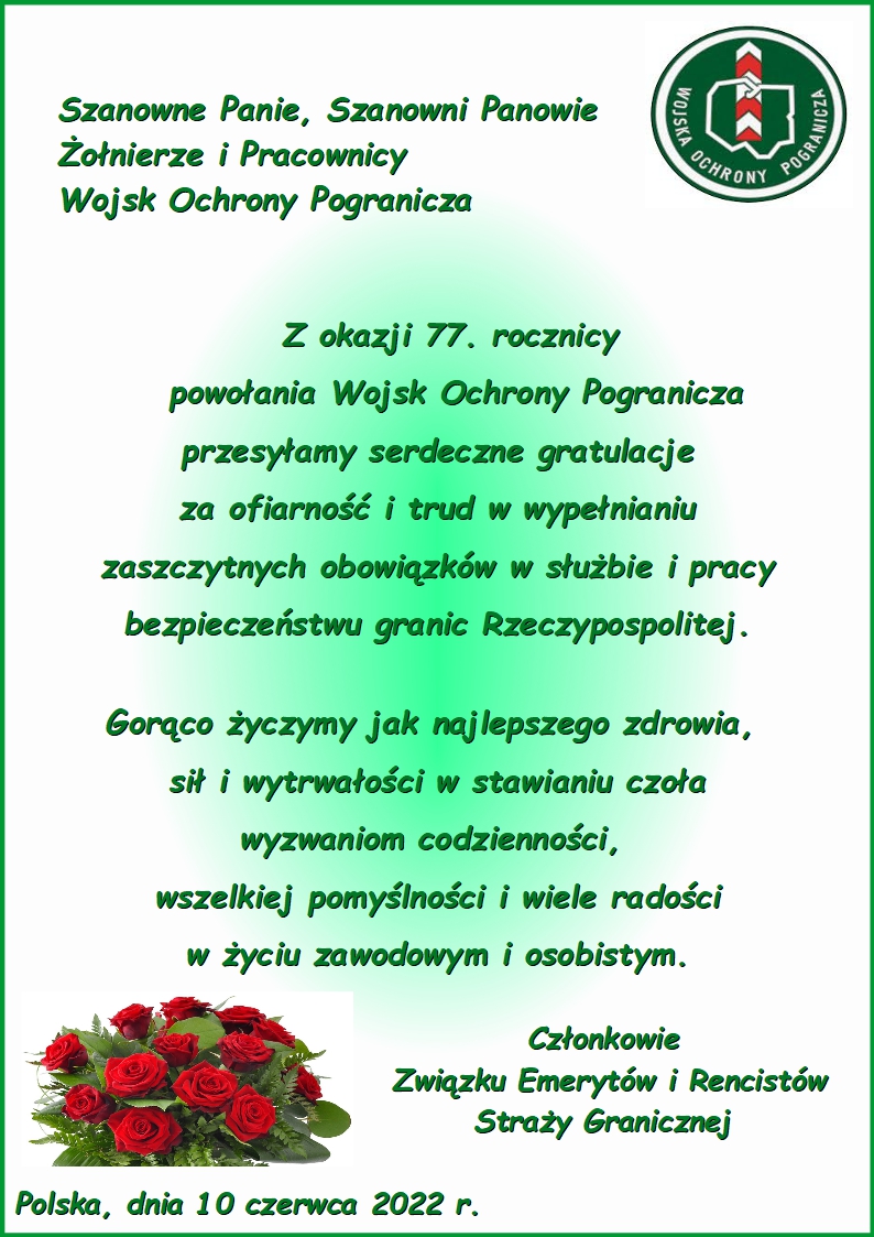 Drodzy Przyjaciele i Sympatycy Związku Emerytów i Rencistów Straży Granicznej