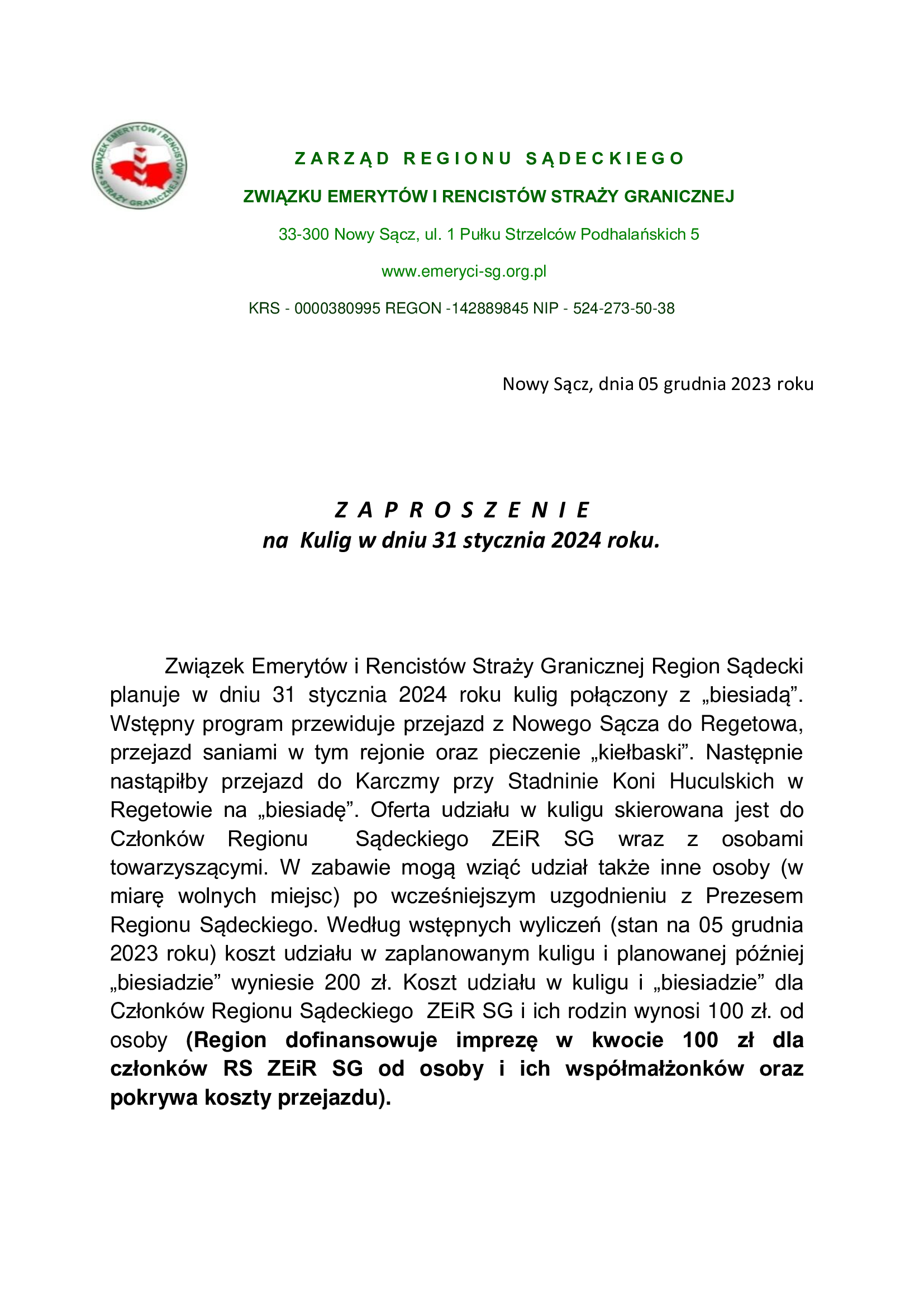 Zapraszamy członków i sympatyków Regionu Sądeckiego ZEiRSG